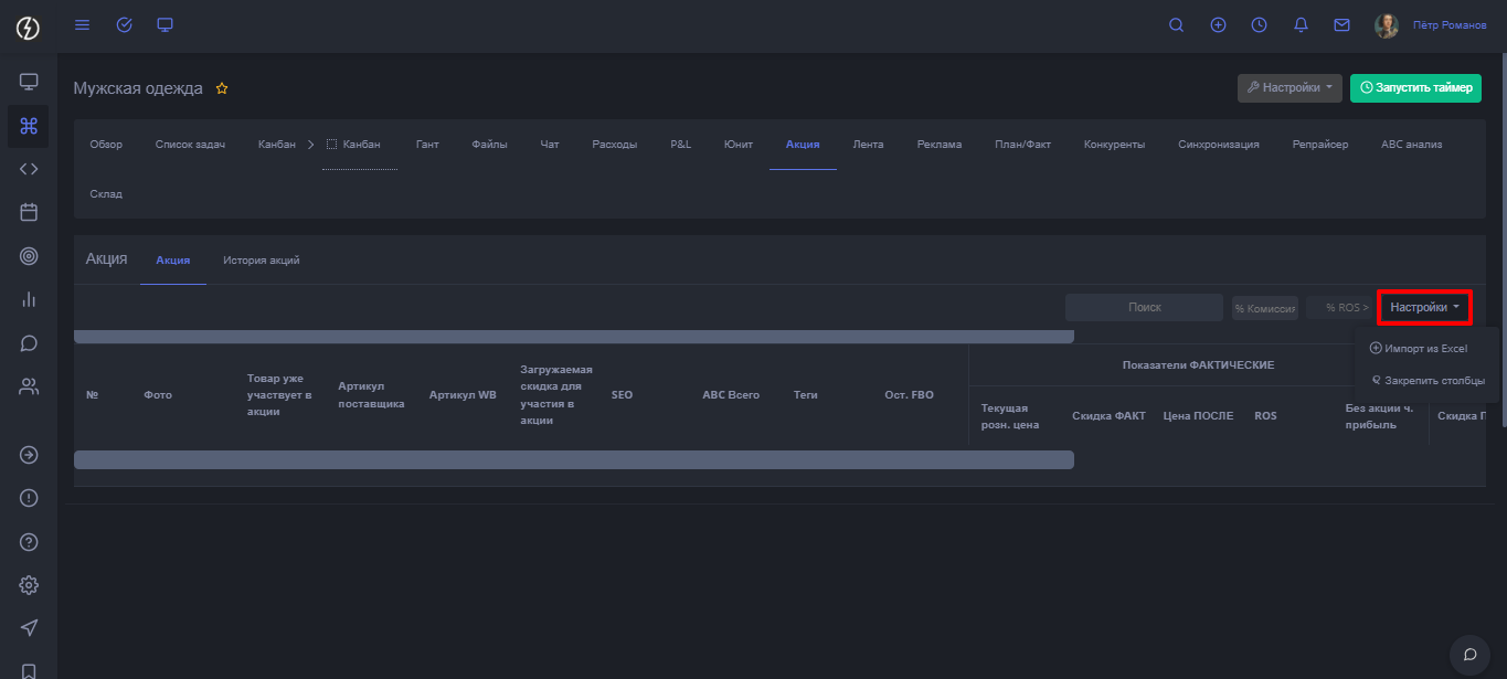 Вкладка "Акция" / в процессе написания