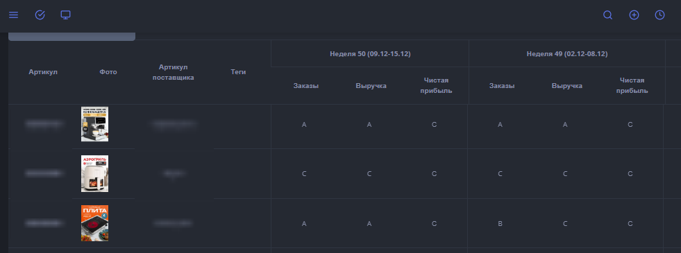 Вкладка "ABC - анализ" / в процессе написания