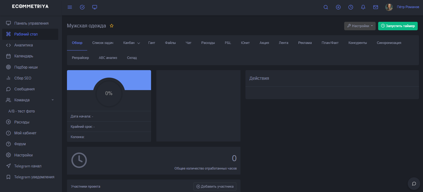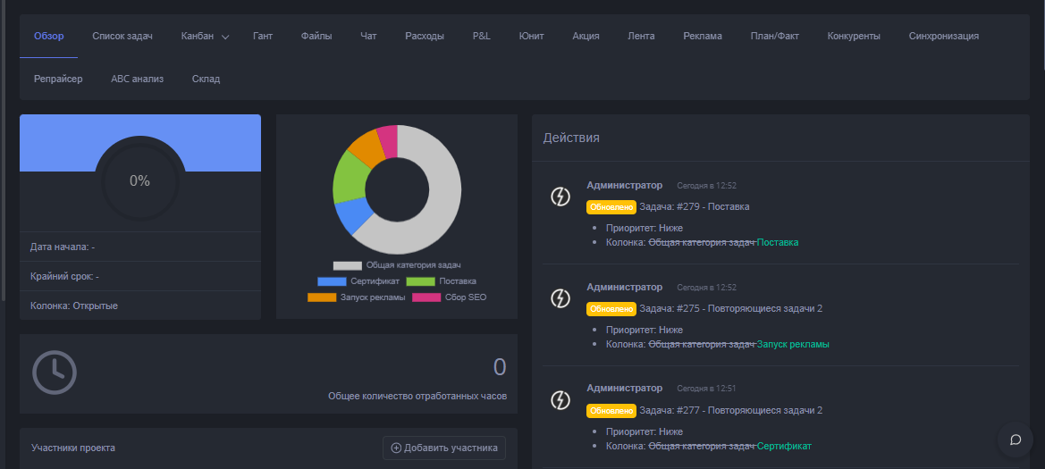 Когда будет проделана работа, тогда вы увидите как наполняется вкладка. Если у вас сотрудничество с коллегой через оплату за время, тогда тут будет указано сколько времени он задействовал на работу